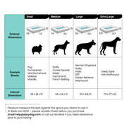 | LARGE | 89 cm x 114 cm x 18 cm | 59 cm x 84 cm x 10 cm | German Shepherd, Husky, Vizsla, GSP, Golden Retriever, Greyhound |