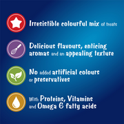 FELIX Party Mix™ Classic Mix Cat Treats contains an irresistible combination of Tuna, Chicken and Bonito flavours in every pack! It's a colourful mix of meaty treats that are full of enticing aromas, delicious flavours and appealing textures your little rascal will love. With three irresistible flavours in every bag, they’re triple the treat!