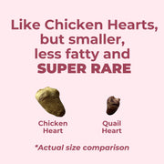 Fureeze Freeze-dried quail hearts are a single-ingredient, nutrient-dense treat rich in protein, essential fatty acids, and taurine for heart and eye health. Freeze-dried to preserve nutrients and intensify flavor, they’re a highly palatable, all-natural option—ideal for pets needing a nutritious, tasty reward.
