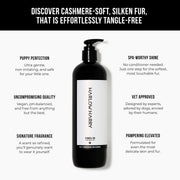 • Our 2-in-1 Conditioning Shampoo doesn’t just cleanse – it’s a silky, soft dream for your dog’s coat. Expect fur so smooth, you’ll be wondering how you ever lived without it.