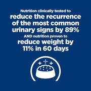 Hill's Prescription Diet c/d Urinary Stress + Metabolic cat food is clinical nutrition specially formulated to help manage your cat's urinary health and weight. It is a weight management cat food that has been shown to reduce the recurrence rate of the most common urinary signs by 89% and reduce body weight by 11% in 60 days. It is also a urinary health cat food that contains ingredients to help manage stress. This wet cat food is made with chicken and has a delicious taste that your cat will love.
