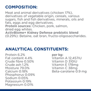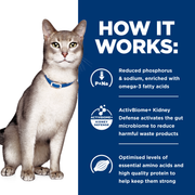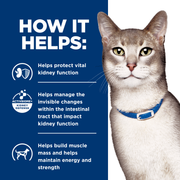 Hill's Prescription Diet k/d Kidney Care with Chicken Wet Cat Food is clinical nutrition proven to improve and lengthen quality of life in cats. Formulated with ActivBiome+ Kidney Defense, a proprietary blend of prebiotics shown to activate the gut microbiome to help protect kidney function. Developed by Hill’s nutritionists and veterinarians, this food contains a high level of essential amino acids, the building blocks of muscle protein. It is also formulated to promote a urinary environment that reduces the risk of developing struvite and calcium oxalate crystals. Please consult your veterinarian for further information on how Prescription Diet foods can help your cat continue to enjoy a happy and active life.