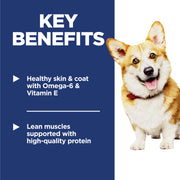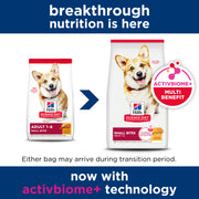 When dogs are in the prime of their life, they'll need a premium pet food that can keep up. Hill's Science Diet Adult Small Bites dry dog food is packed with omega-6s & Vitamin E to give dogs a beautiful skin & coat. This premium adult dog food also provides high-quality protein to help dogs maintain lean muscle. The kibble size is perfect for dogs that prefer a smaller kibble; and with a special blend of prebiotic fibres and antioxidants, ActivBiome+ Multi-Benefit, supports digestion, immune system and organ health. This adult dog food made with natural ingredients is specially formulated with decades of cutting-edge research to be a great-tasting meal adult dogs can truly enjoy.