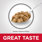 Made with purposeful ingredients for a flavourful, nutritious meal, Hill's Science Diet Adult Tender Chicken Dinner is a perfect balance between the taste of tender real chicken and the precise nutrition your adult cat needs. Made in an easy-to-digest balance of taste and nutrition, this cat food made with natural ingredients provides your grown cat with high-quality protein for muscle maintenance.