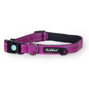 This Trekpro purple dog collar is part of the Altitude collection. The Trekpro collar has a neoprene backing for chafing protection and a locking safety buckle. The collar also features an ID ring and reflective stitching for visibility when walking in the early morning or evening.