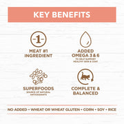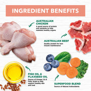 Superfoods including Blueberries and Pumpkin are added as a source of antioxidants, and fish oil and flaxseed oil deliver Omega 3 & 6 to help support healthy skin & coat.