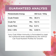 Ivory Coat knows the power of natural health solutions to help pets live longer, healthier and happier lives. Our team of seasoned research and development pet food specialists, in consultation with veterinary experts, have crafted our Kitten Grow & Protect Formula. It features scientifically validated natural components including DHAgold® and 100% freeze-dried raw protein, ensuring your kitten gets the best start to a healthy life. Our recipe is guided by our belief in fresher feeding. Unlike traditional kibble which relies solely on dried meat meals, our innovative technology allows us to combine Australian sourced raw meat into our unique formulation, which is then cooked and topped off with 100% freeze dried raw lamb. Freeze drying has minimal to no effects on nutritional value, locks in nutrition and provides a highly bioavailable source of protein, vitamins, minerals and essential fatty acids. It's tailored nutrition that offers everything they need to live their best life!