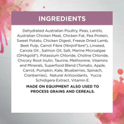 Our innovative kibble design combines raw Australian meat cooked together with our natural functional ingredients which is topped off with 100% freeze dried raw lamb pieces in our recipe. The freeze drying process locks in nutrition for better digestibility and flavour.