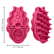 The KONG ZoomGroom™ helps make it easier to get your dogs clean. While shampooing use the ZoomGroom™ to clean your dogs’ coat. The 3/4 inch rubber fingers reach through the coat to massage the skin, stimulating capillaries and natural oil production leading to a healthy coat for your dog.