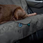 Like many bench seat covers in the market, the Rover Bench Seat Cover is both waterproof and stain resistant. But a seat cover is only as good as its ability to stay on the seat, so we built ours with top, middle, rear and under seat attachments to keep it from slipping off, double stitched seams to stop it from tearing, and raised piping to keep the dirt and water from rolling on to the floor, plus pockets for treats, toys or leashes.