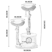 It comes with two-tier baskets screwed into sturdy structure poles in a tree trunk design that can accommodate heavier or larger cats weighing 9-11 kg. It is made of real tree branches that are properly treated to ensure safety for your pets.