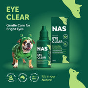 Playing in dirt, sand, grass, dust and mud are all signs of a healthy happy life for a pet. On occasion, dirt, sand or water and wind can irritate or dry the eye out, causing discomfort. Having the NAS gentle Eye Clear solution on hand enables quick relief and support to return the eye to it’s natural balance.