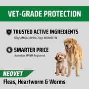 NEOVET For Dogs (10-25kg) is a complete, once-a-month spot-on treatment designed to provide comprehensive protection against parasites. It shields your dog from fleas, heartworm, intestinal worms, and mites in a single, easy application.