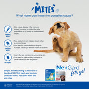 NexGard SPECTRA offers complete protection against a variety of parasites by treating and preventing fleas, ticks, mites, lice, and worms. With just one chew per month, you can keep your dog protected from harmful parasites that could lead to significant health problems.