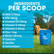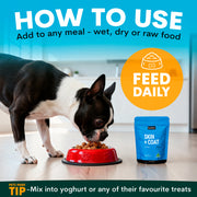 This powdered supplement uses Omega 3 fatty acids such as EPA and DHA. Omega 3 is known to improve skin and coat, support brain development, boost the immune system and improve heart function. Skin + Coat has been designed for dogs experiencing skin diseases such as hotspots or external allergies.