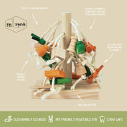 The Pipsqueak Munchee Post is perfect for satisfying your small animals natural instincts to chew and climb when you're not home. The different shapes attached to the post will challenge your small pet to stretch and catch the different shapes hanging off the centre post. All materials and dyes are natural and pet friendly for rabbits, guinea pigs and mice to gnaw on.