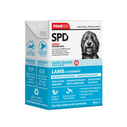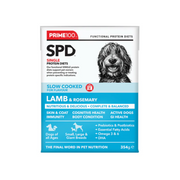 Prime100 SPD™ Slow Cooked Lamb & Rosemary is a single protein diet designed for active dogs and puppies. Complete and balanced for dogs of all ages and breeds, including giant breeds. No added artificial colours, flavours, or preservatives. Formulated with natural sources of essential amino acids and dietary fats to help sustain energy and essential nutrients for muscular and brain development.