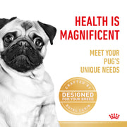 Royal Canin Dog Pug Adult Dry Food is a specialised nutrition solution designed specifically for adult Pugs over 10 months old. This tailored formula is designed to support the unique needs of this charming breed, including healthy skin, muscle tone, and ideal weight maintenance. With its compact body and distinctive facial features, the Pug requires a diet that caters to its specific physique and potential health concerns.