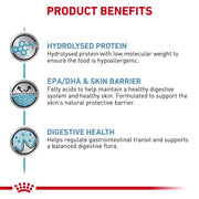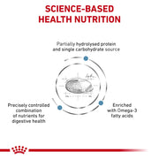 This hypoallergenic dog food features highly digestible, hydrolysed soy protein isolate with low molecular weight peptides. It's particularly beneficial for dogs with conditions such as canine atopic dermatitis, chronic diarrhoea, inflammatory bowel disease, exocrine pancreatic insufficiency, and small intestinal bacterial overgrowth, offering a comprehensive approach to managing food-related health concerns.