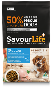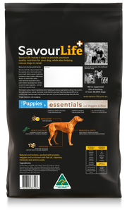 The first months of a puppy’s life is crucial to their long-term health and well-being. Puppies require more nutrients and energy than older dogs to help them grow into the best dog they can be. With all the healthy vitamins, minerals, nutrients and DHA GOLD known to assist in neurologic development, while also assisting retina development in growing puppies. SavourLife Essentials Chicken with Veggies & Rice for Puppies is an all-natural, Australian-made and Owned food, made with premium Australian Chicken, the perfect meat for puppy’s sensitive tummies, making it the perfect food for your puppy!