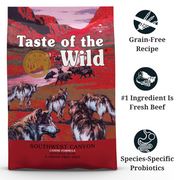 Taste of the Wild Southwest Canyon Canine Recipe is formulated to meet the nutritional levels established by the AAFCO Dog Food Nutrient Profiles for All Life Stages including growth of large size dogs (31kg. or more as an adult).